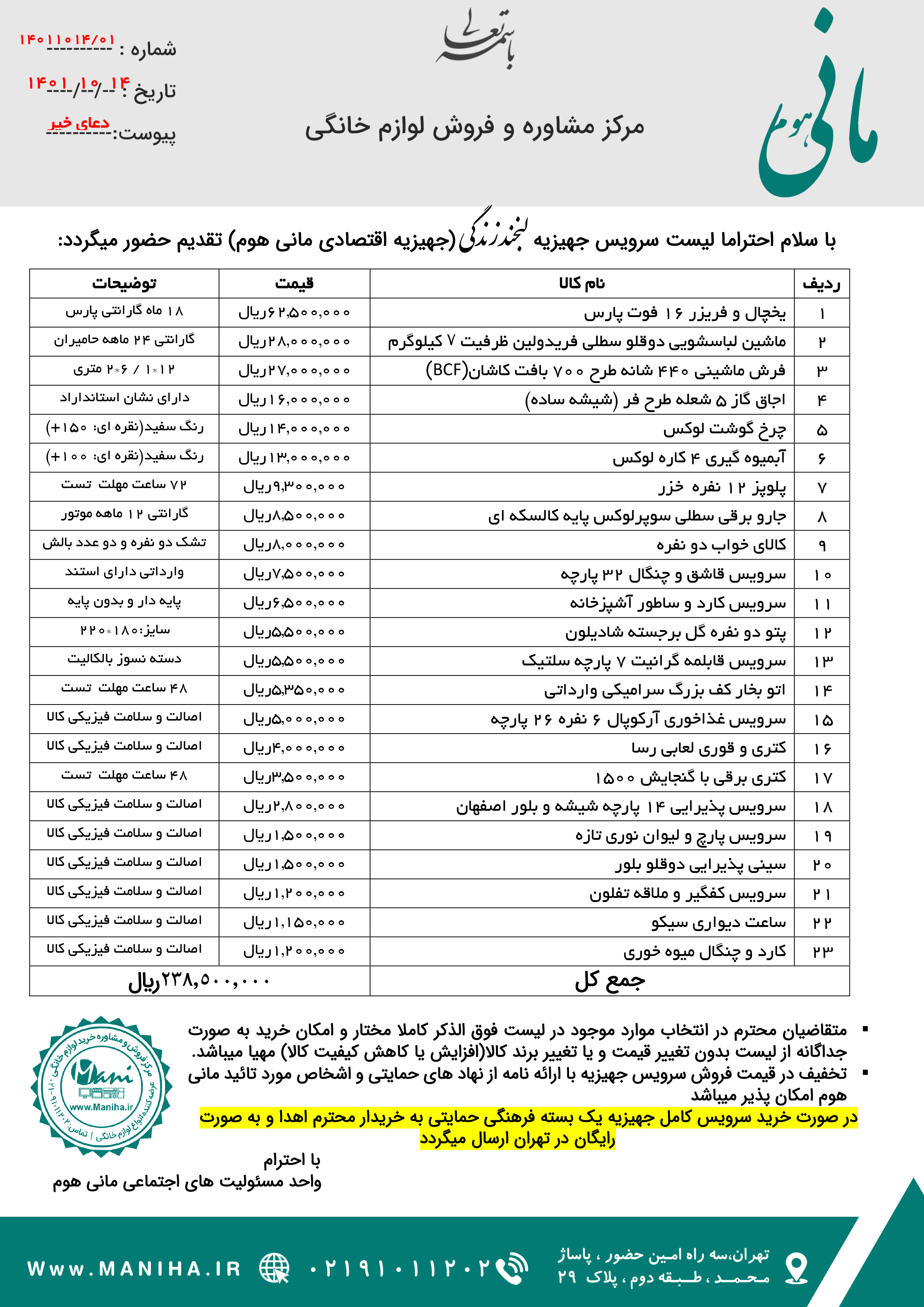 - هزینه ارسال و حمل سرویس جهیزیه لبخند زندگی برای شهر تهران رایگان میباشد و برای شهرستان ها تا باربری رایگان میباشد.