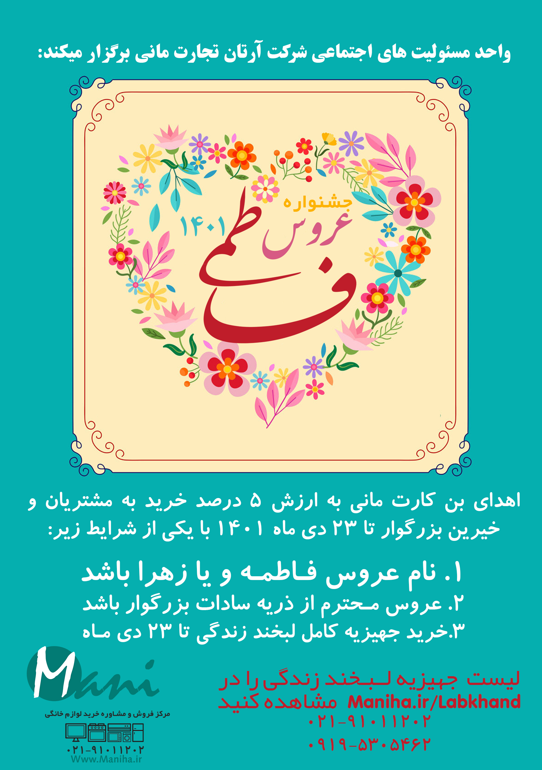 - در صورتی که نام عروس فاطمه یا زهرا باشد پس از اتمام جشنواره با ارسال مدارک شناسایی معتبر در این جشنواره شرکت میکنند.