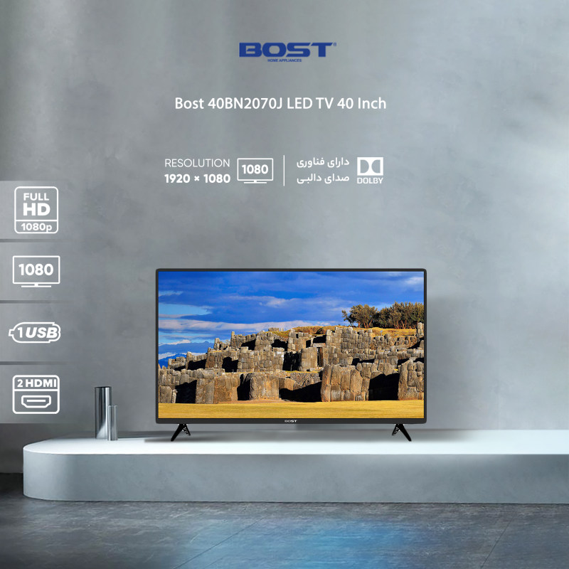 در ساخت تلویزیون ال ای دی بست مدل «40BN2070J » از پنل «VA» استفادهشده است که از جدیدترین پنلهایی است که امروزه در دنیا در صفحهنمایش تلویزیونها به کار میرود. این فناوری این امکان را به کاربران میدهد تا دید بهتر و بازتری از تصاویر داشته باشند و نور تصاویر بر روی یک قسمت متمرکز نشده و بهصورت پراکنده منتشر میشود در تلویزیون بست مدل «40BN2070J » رزولوشن 1080 × 1920و نسبت تصویر 16:9 و همچنین صفحه تخت، صرفهجویی هوشمند مصرف برق یا همان حالت Save Energy وجود دارد که از هدر رفت بالای انرژی جلوگیری میکند و در هزینههای خانوار نیز صرفهجویی میکند. ال ای دی بست مدل «40BN2070J » پورتهای «HDMI» و«USB HD » به ترتیب با دو ورودی و یک ورودی وجود دارد و شما بهراحتی میتوانید فلش مموری یا هر نوع حافظهای مانند هارد اکسترنال را به پورتهای تلویزیون متصل کنید و در هنگامیکه نمیتوانید برنامهها را در زمان مشخص آنها تماشا کنید، آنها را بر روی حافظه خارجی ضبط کنید. این تلویزیون سیستم صوتی 2 کاناله و 2 بلندگو دارد که بر این اساس هم توان خروجی کلی صدا 20 وات بوده و توان هر بلندگو 10 وات است. برای صدای خروجی تلویزیون از فناوری « Dolby Digital» و «Dolby» استفادهشده است و مجهز به راهنمای الکترونیکی برنامههای تلویزیونی است.شاید بارها برای شما اتفاق افتاده که به دلیل اینکه سرکار هستید یا به دلیل مشغله های زیادی که دارید نمیتوانید در ساعت تعین شده فیلم یا برنامهی موردعلاقهی خود را تماشا کنید که پارها از اینکه نمیتوانید آن را ببینید احساس نگرانی دارید. اما باوجود تلویزیون ال ای دی بست دیگر نگران این مشکل نباشید چون به کمک سیستم ماشین زمان قادر است که برنامهی موردنظر شمارا ضبط کند و هر ساعتی از روز که وقت داشتید میتوانید آن را مشاهده کنید.