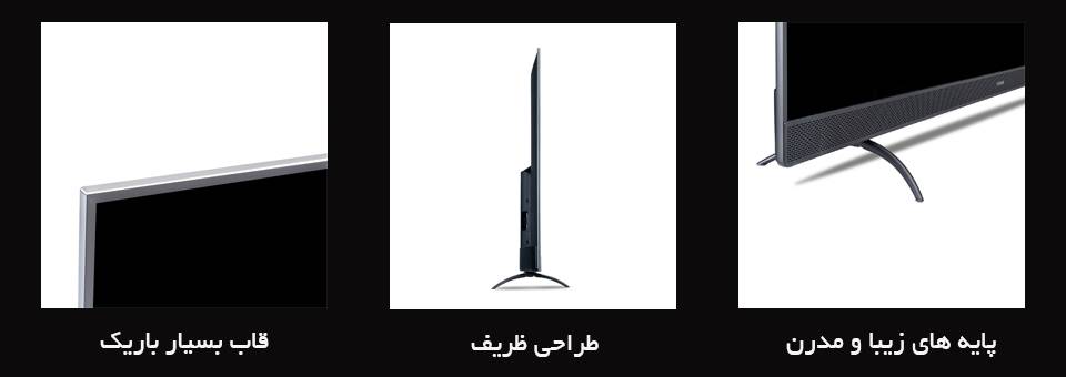 طراحی تلویزیون مدل 55XTU745 از کمپانی ایکس ویژن، کاملا ظریف و زیبا است. بدنه این دستگاه فلزی است و قاب بسیار باریکی دارد که این تلویزیون را بسیار شیک و مدرن نشان میدهد. طراحی بلندگو در قسمت جلویی تلویزیون علاوه بر زیبایی باعث انتقال بهتر صدا میشود و صدا دقیق تر و رساتر به گوش کاربران میرسد.