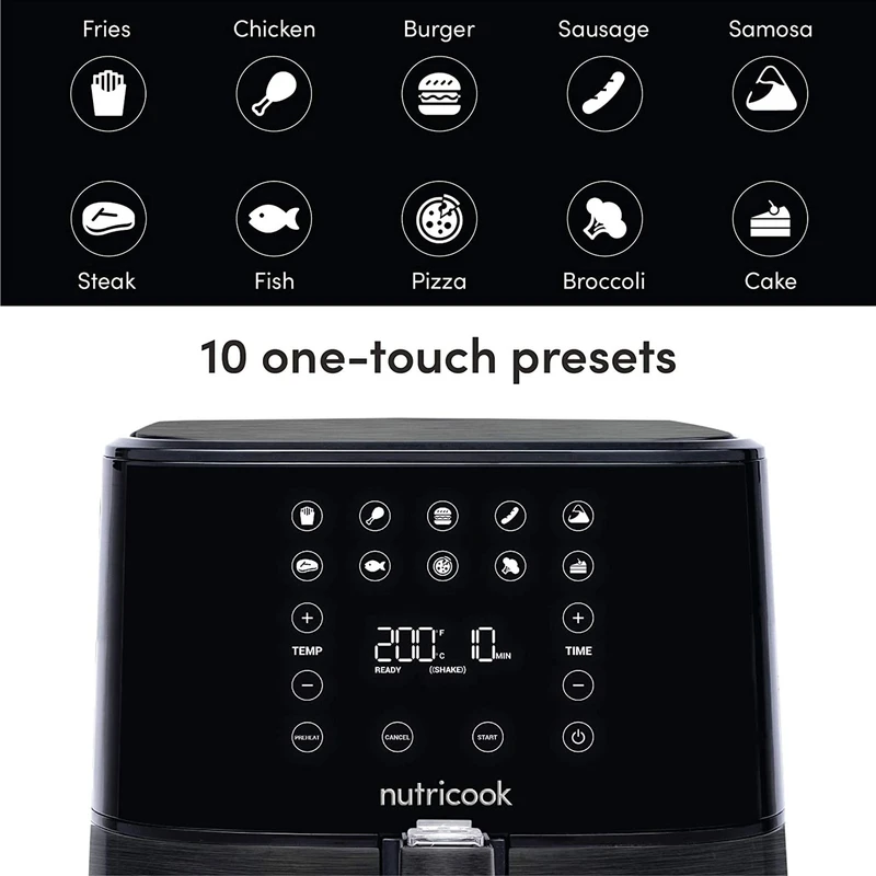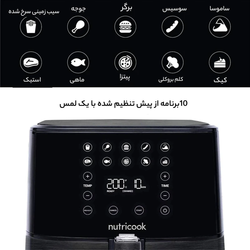 Quicker (سریعتر) ، Crispier (ترد تر) ، Healthier (سالم تر) این شعار سرخ کن های برند نوتریکوک است. سرخ کن جدید شرکت نوتریکوک با طراحی براق (مشکی برس خورده) با کیفیت برتر ، اندازه جمع و جور می تواند سرآشپز هر آشپزخانه ای شود. با کمک فناوری SmartTemp به طور خودکار دما را تنظیم می شود. سرخ کن AF205K دارای یادآوری مفید Shake است ، که به شما زمان تکان دادن محتویات را برای یکنواختی اطلاع می دهد. سبد سرخ شده با کیفیت عالی بدون PFOA ، بدون BPA ، با پوشش ضد چسب و قابل شستشو در ماشین ظرفشویی دارای فضای قابل استفاده بیشتری برای قرار دادن مواد غذایی ، بیشتر از یک سبد طرح گرد دارد.