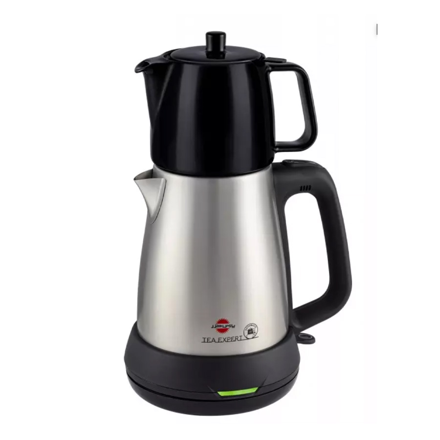 چای ساز پارس خزر 2200 وات، استيل،مشكي، ظرفيت كتري 1.7 ليتر، ظرفيت قوري0.7 ليتر، جوش آوردن آب كمتر 4 دقيقه، داراي المنت مخفي و قطع كن اتوماتيك، مجهز به قطعات الكتريكي مرغوب با برند Strix انگليس
