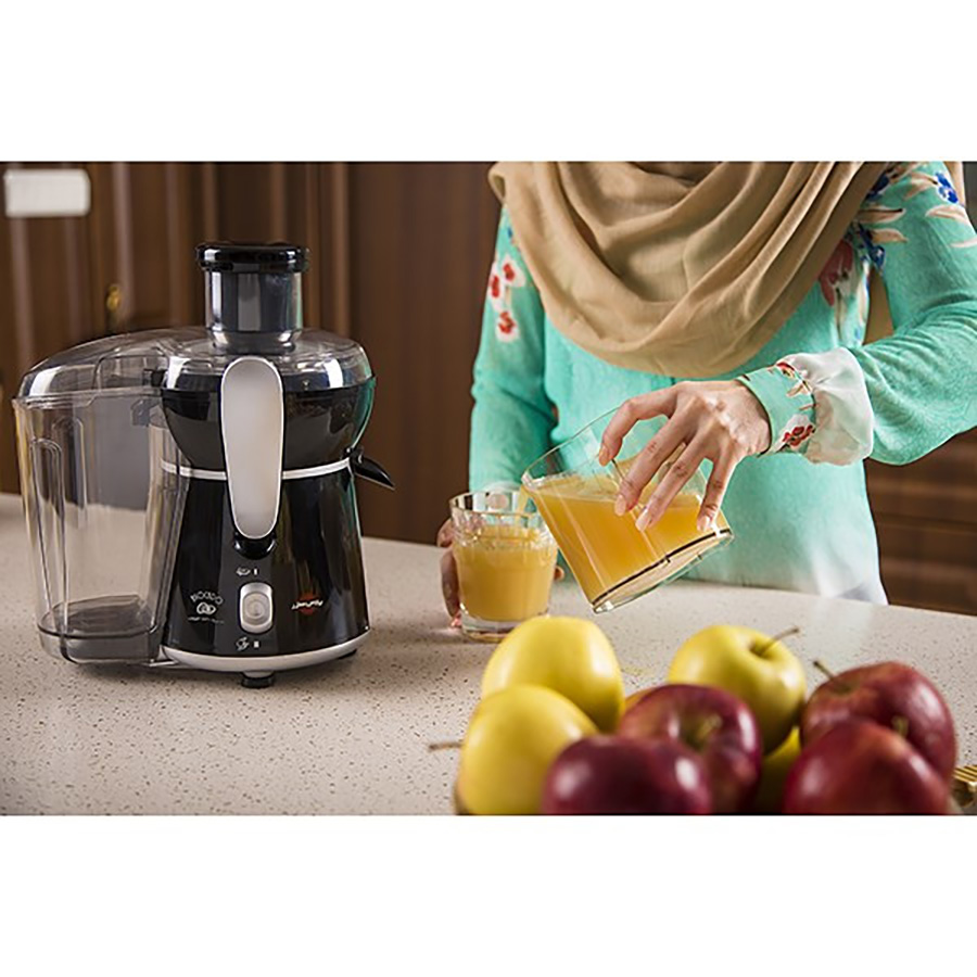 ظرف تفاله بزرگ برای داشتن آبمیوه بیشتر در هر بار استفاده - پارچ آبمیوه مدرج - دارای پایههای لاستیکی برای ایستایی بیشتر - کلیه قطعات جدا شونده برای شستشوی بهتر - برس مخصوص شستشو - دهانه بزرگ ورودی میوه - دارای سیم جمع کن در قسمت زیرین دستگاه