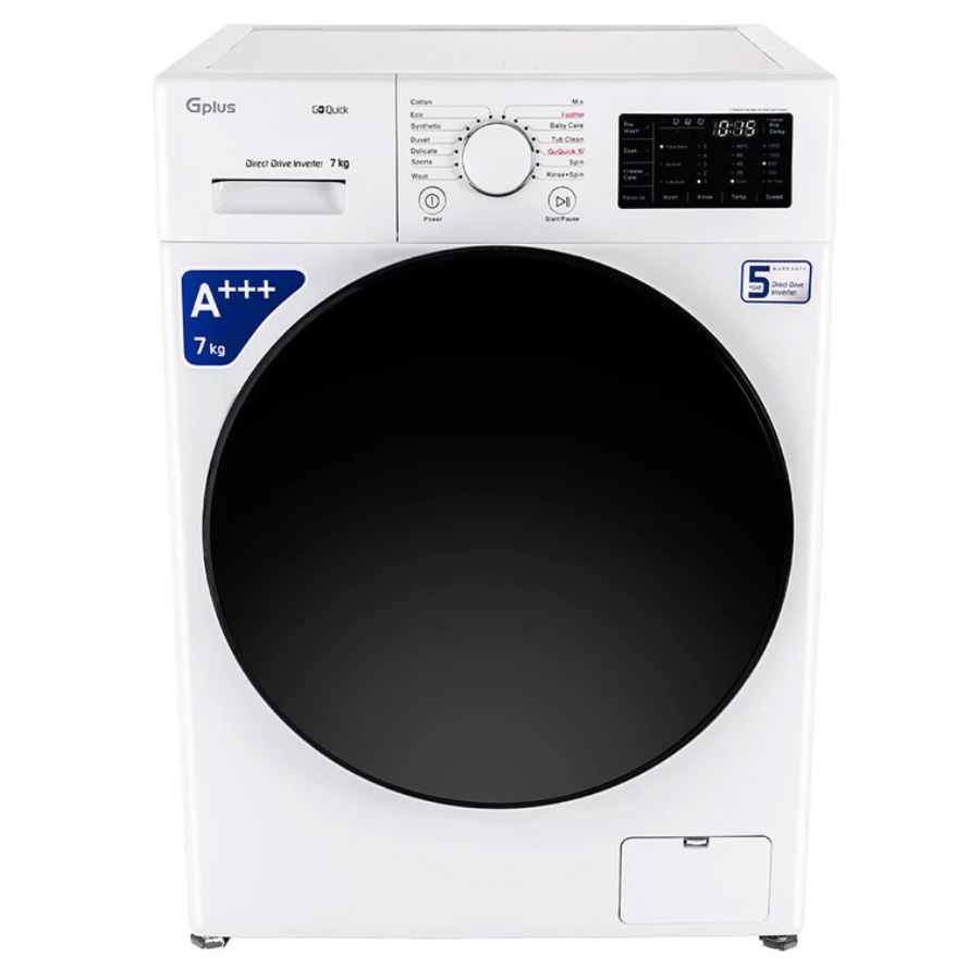 یکی از قابلیت های این مدل از لباسشویی های جی پلاس قابلیت شستشوی سریع GO QUICK است. این قابلیت این امکان را به شما میدهد تا لباس های خود را در مدت زمان کوتاه تر بشویید. لازم به ذکر است که برای شست و شوی سریع باید لباس کمتری (حداکثر یک و نیم کیلو )داخل لباسشویی بریزید.