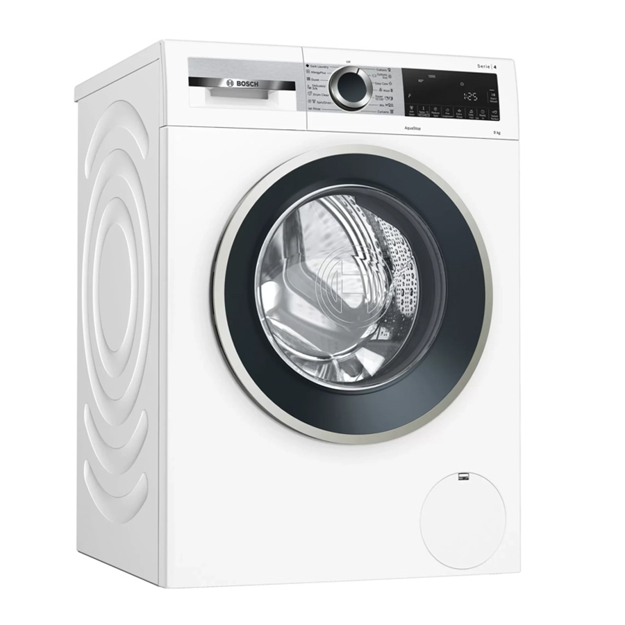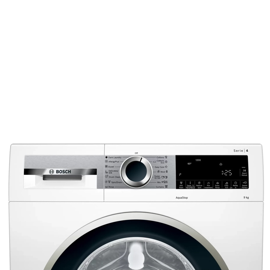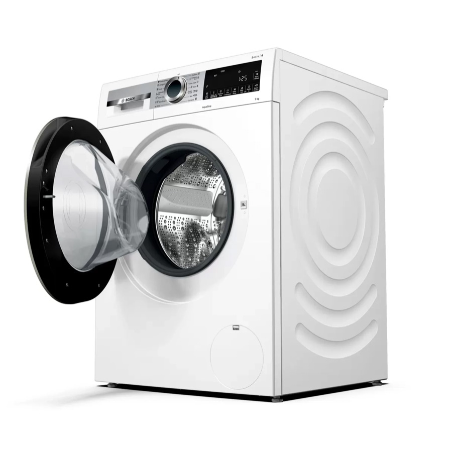 قدرت موتور ماشین لباسشویی بوش 1200 دور در دقیقه است. سطح صدای شستشو دستگاه 50db و سطح صدا در حین چرخش آن برابر 72db می باشد. مخزن دیگ ماشین لباسشویی از جنس استیل ضد زنگ بوده و حجم وان آن 65 لیتر است. بر روی بدنه دستگاه شیارهایی طراحی شده که از ارتعاشات دستگاه کم کرده و مانع لرزش شدید آن می شود و در کاهش میزان صدای ماشین لباسشویی نیز تاثیر گذار است. درون ماشین لباسشویی 9 کیلویی بوش از محفظه ی VarioDrum استفاده شده است این محفظه آب و مواد شوینده را در سراسر دیگ به صورت یکنواخت پخش می کند. لباسشویی بوش دارای 12 برنامه شستشو است که هر برنامه کاربرد های متفاوتی دارد به عنوان مثال برنامه Drain/Spin برای خشک کردن و تخلیه آب دیگ شستشو می باشد. با استفاده از برنامه Quick wash/Mixture می توان انواع لباس ها را با جنس و رنگ های مختلف در کمترین زمان ممکن شستشو داد.