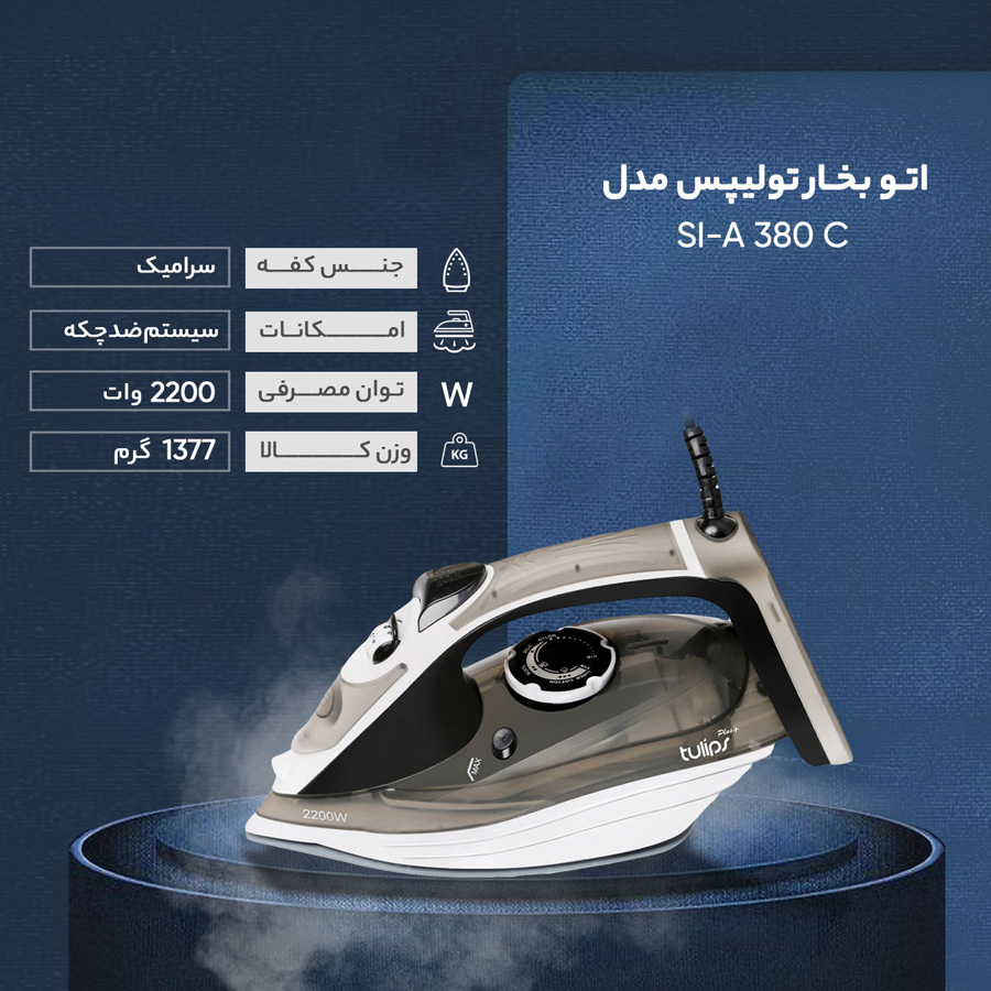 اتو بخار تولیپس مدل SI-A380 C یک اتوی منحصر به فرد ، زیبا و همراه با کاربری آسان است و برای مصارف خانگی بسیار مناسب بوده و در هنگام کار موجب خستگی نمی شود. سطح اتو پوشیده شده از سرامیک می باشد که گرما را در تمام سطح اتو گسترش داده و به راحتی موجب حرکت آسان بر روی لباس ها می گردد و لباس های لطیف تر نیز کمتر در معرض سوختگی قرار می گیرند. و در مجموع اتو بخار تولیپس مدل SI-A380 C به گونه ای طراحی شده که امکان اتوکشی انواع لباس، پرده و … را فراهم می کند. این دستگاه مجهز به سیستم ضد چکه و بخاردهی عمودی است.